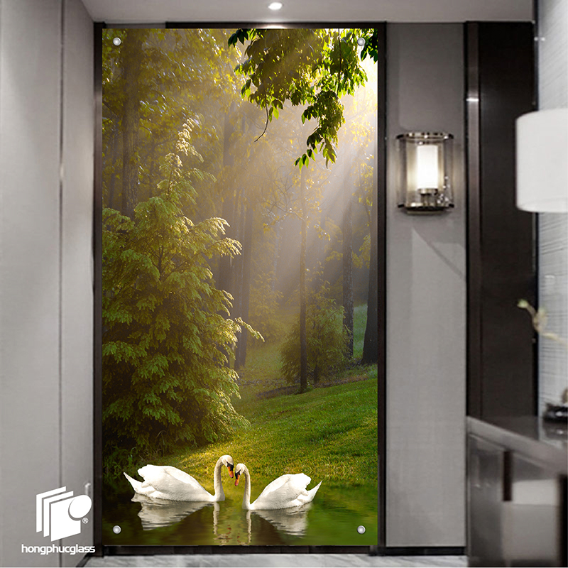 Tranh kính đôi thiên nga trong hồ TPC-45