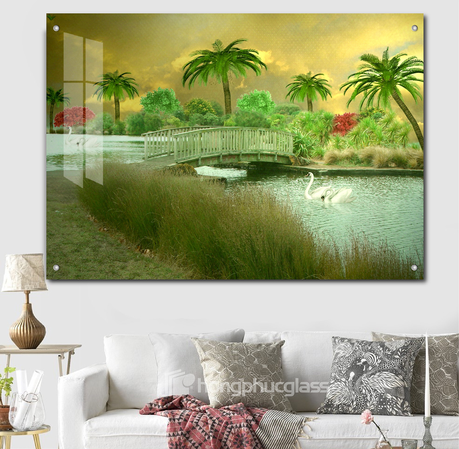 Tranh kính phong cảnh hồ thiên nga TPC-02